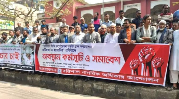 নিজস্ব প্রতিবেদক, বরিশাল: বরিশাল সিটি করপোরেশন কর্তৃক প্লান অনুমোদনে জটিলতা ও হয়রানির প্রতিবাদ এবং নাগরিক আন্দোলনের সদস্য ইঞ্জিনিয়ার শাহ আলম সিকদারের উপর সিটি কর্পোরেশন কর্মকর্তা-কর্মচারী কর্তৃক অতর্কিত হামলার বিচারের দাবিতে